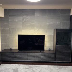 シアーブラック色のテレビボードとキャビネット