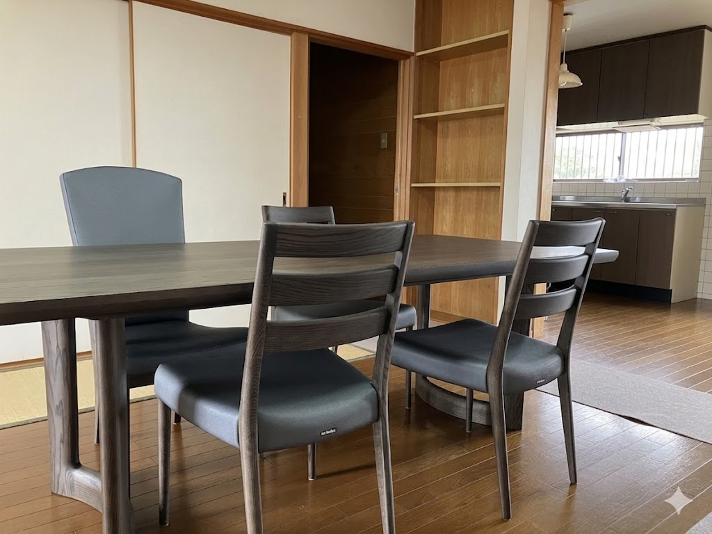 - 実家と同じダイニングチェア と 奥行の変えられるダイニングチェア