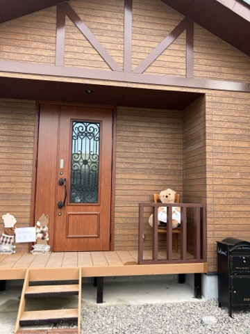 お店の前のデッキには椅子に座ったティディベアがお出迎え。