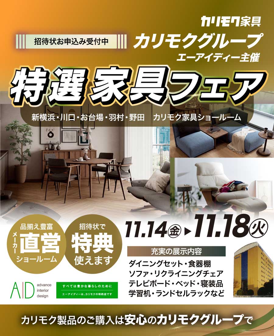 2025/11/15(土) 〜 2025/11/24(月)カリモク家具 仙台ショールーム プレミアム家具フェア