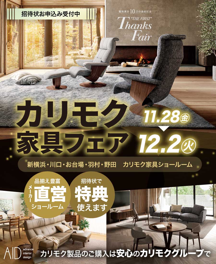 2025/11/29(土) 〜 2025/12/7(日)カリモク家具 仙台ショールーム リビングダイニングフェア