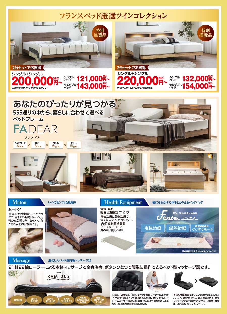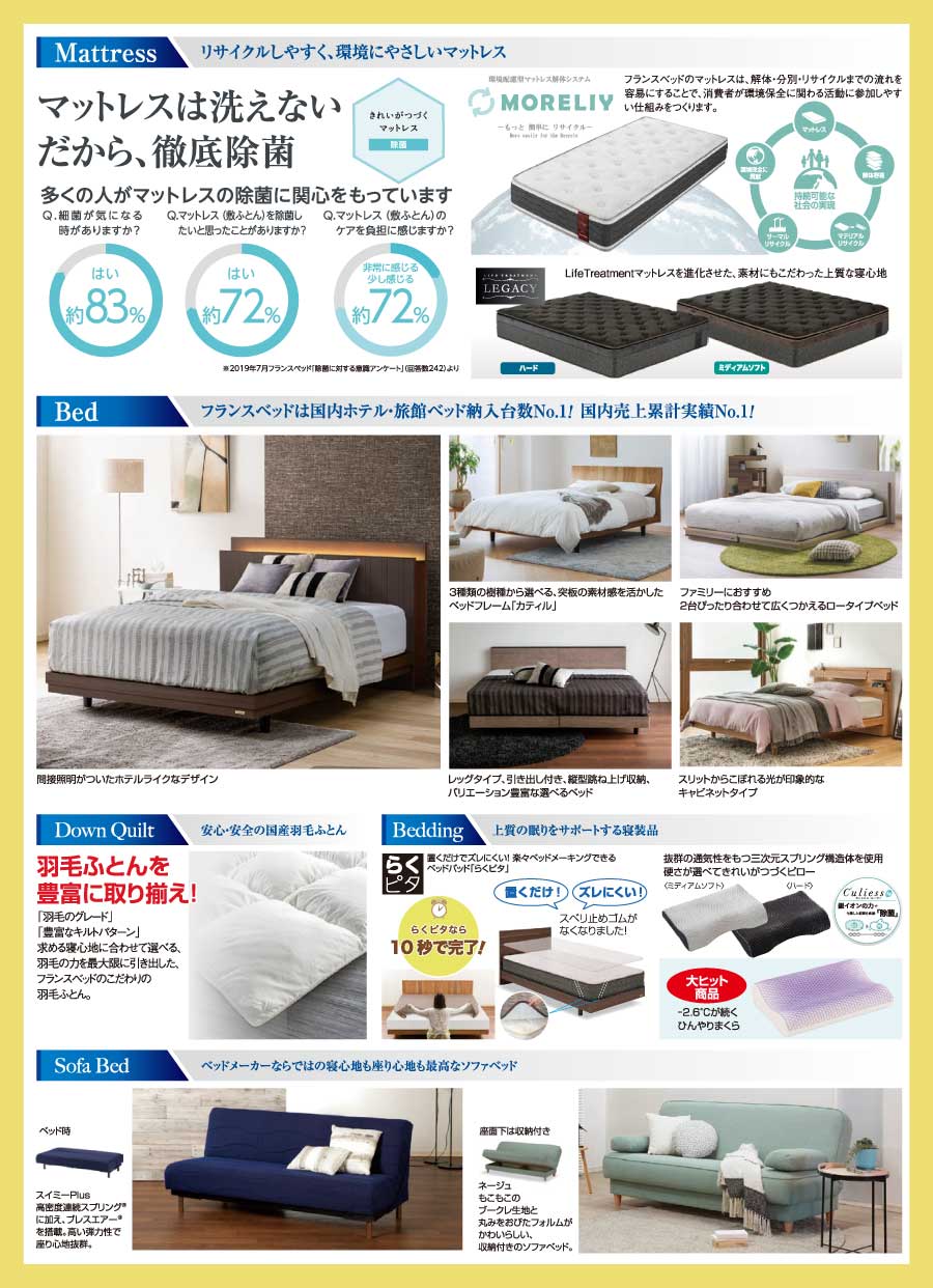 セミシングルベッドフレーム・シングルベッドフレーム・セミダブルベッドフレーム・ダブルベッドフレーム・ワイドダブルベッドフレーム・クィーンベッドフレーム・キングベッド・セミシングルマットレス・シングルマットレス・セミダブルマットレス・ダブルマットレス・ワイドダブルマットレス・クィーンマットレス/LTシリーズ・ブレスエア・スランバーランド・リハッテク・クラウディア・テンセル・介護ベッド・電動リクライニングベッドシングル・電動リクライニングベッドセミダブル・電動リクライニングマットレス・グランマックス・エゼックス・レステックス・宮付きベッド・フラット・レッグ式ベッド・ドロアベッド・跳ね上げ式ベッド(TS、YS)・スノコ式ベッド・ソファ一人掛け・ソファ二人掛け・ソファ二.五人掛け・ソファ三人掛け・総革張りソファ・ドイツ製ソファ・イタリア製ソファ・カウチソファ・エルポ・ソファベッド・パーソナルチェア・リクライニングチェア・マッサージチェア・ピロー・まくら・羽毛ふとん(シングル、セミダブル、ダブル、ワイドダブル、クィーン、キング)・寝装品・ベッドパッド・マットレスカバー・掛けふとんカバー・まくらカバー・ピロケース・ムートンなど