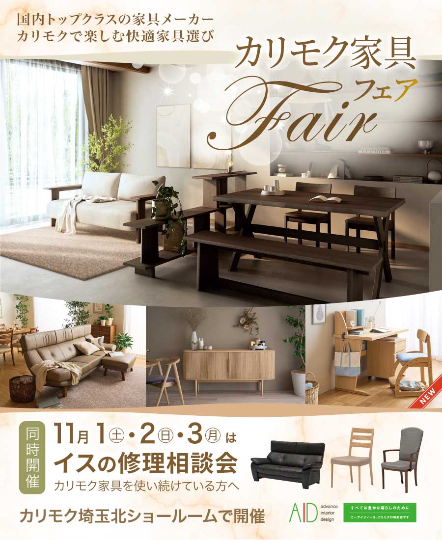 カリモク家具 埼玉北ショールーム カリモク家具フェア|イスの修理相談会も