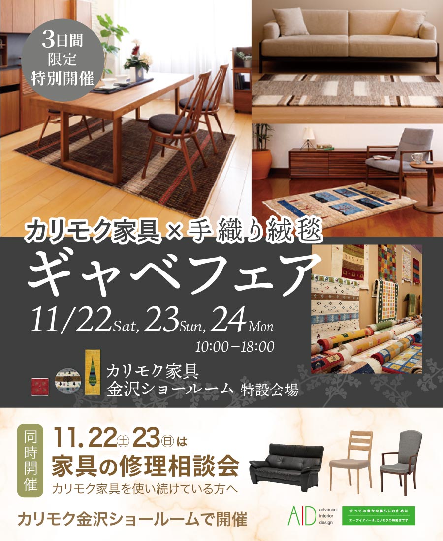 カリモク家具 金沢ショールーム ギャベフェア&修理相談会