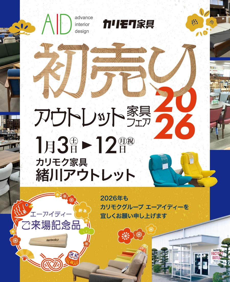 カリモク家具 緒川アウトレット 初売り2026アウトレット家具フェア