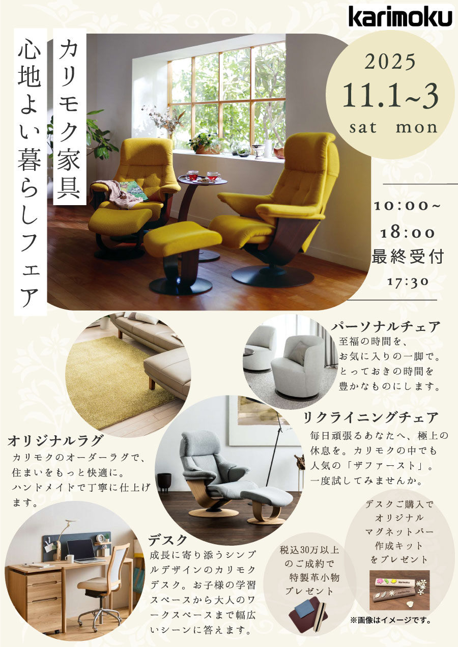 【3日間限定】心地よい暮らしフェアはカリモク家具主催のフェアです。