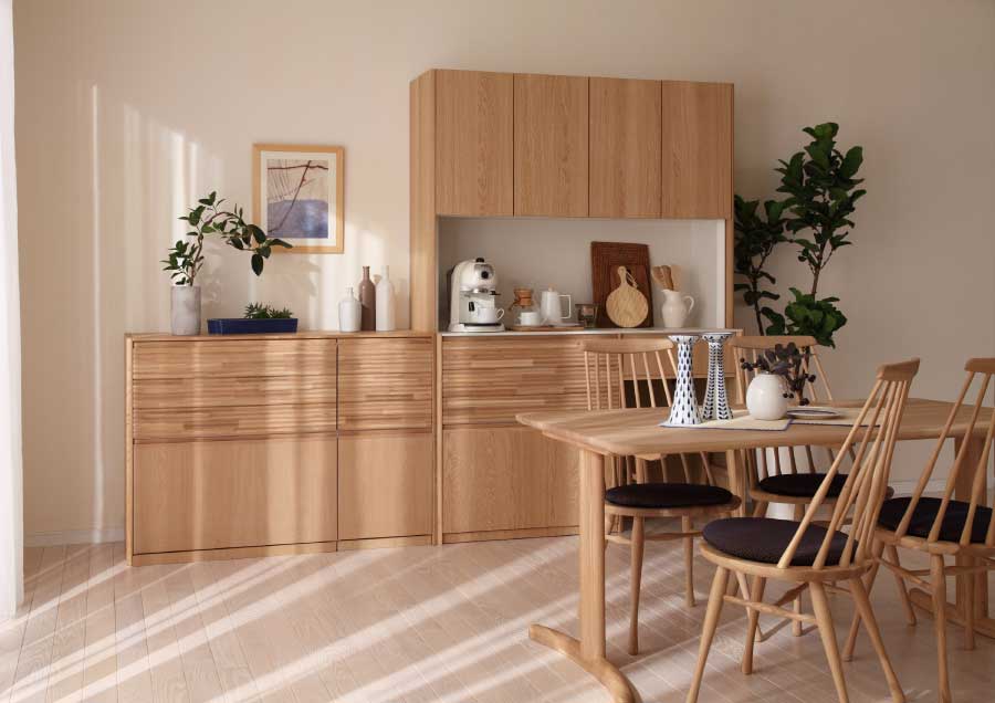 造り付けのような一体感と、置き家具ならではの軽快な自由度。カリモクの収納アイテムは、住空間に馴染み、暮らしに合わせた使い方も可能。今の快適さと将来を見据えた収納アイテムで、暮らしを整えませんか?
