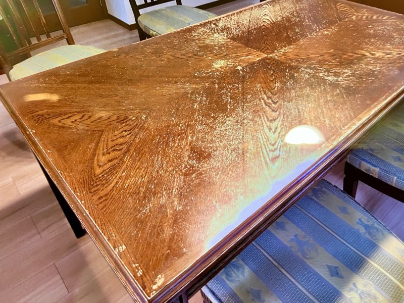 - カリモク家具 ドマーニ DPQ500MD ダイニングテーブル 天板再塗装 修理