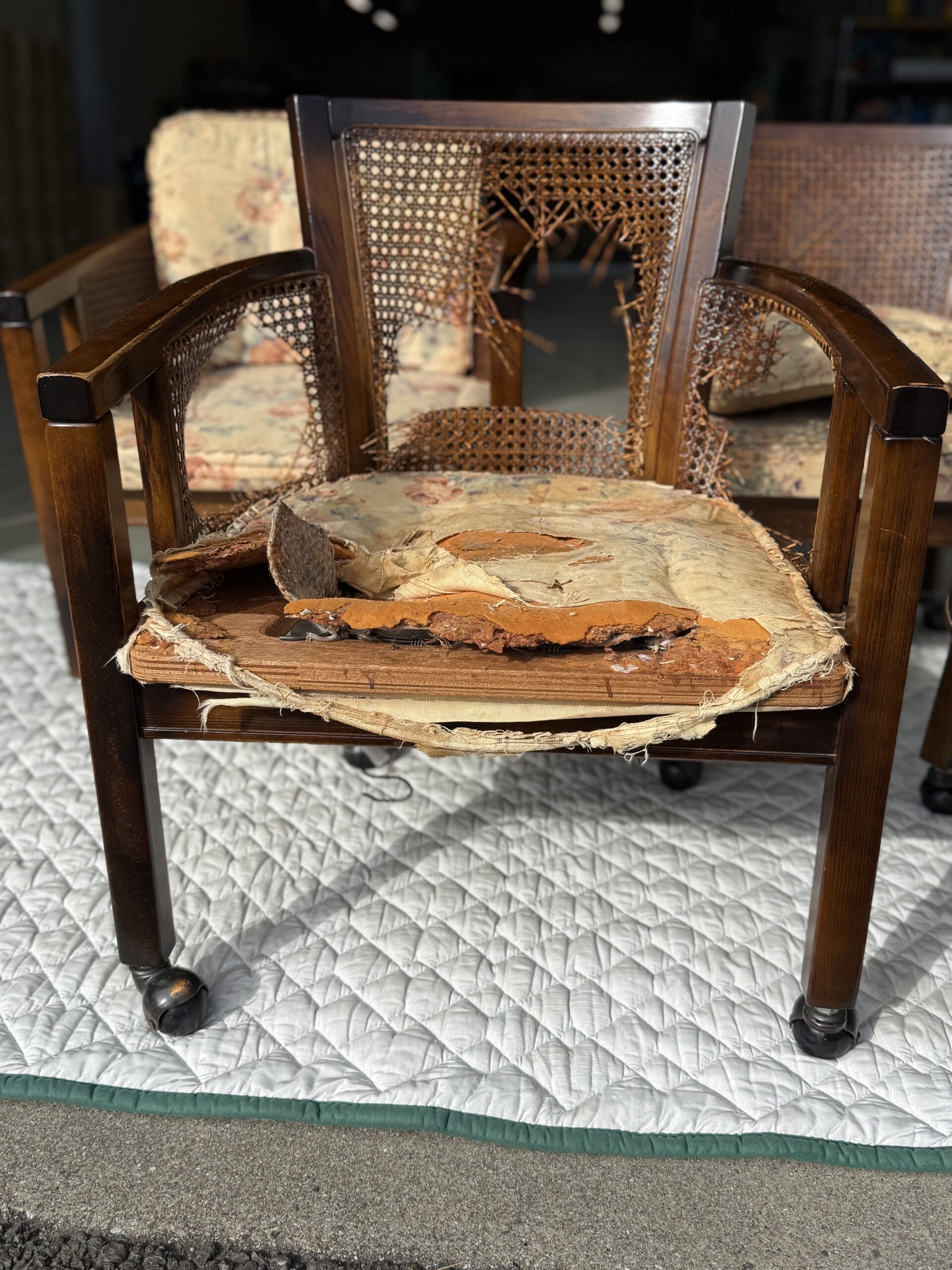 当初、お客様からは「座面と背もたれの張替え」のご依頼をいただいておりました。