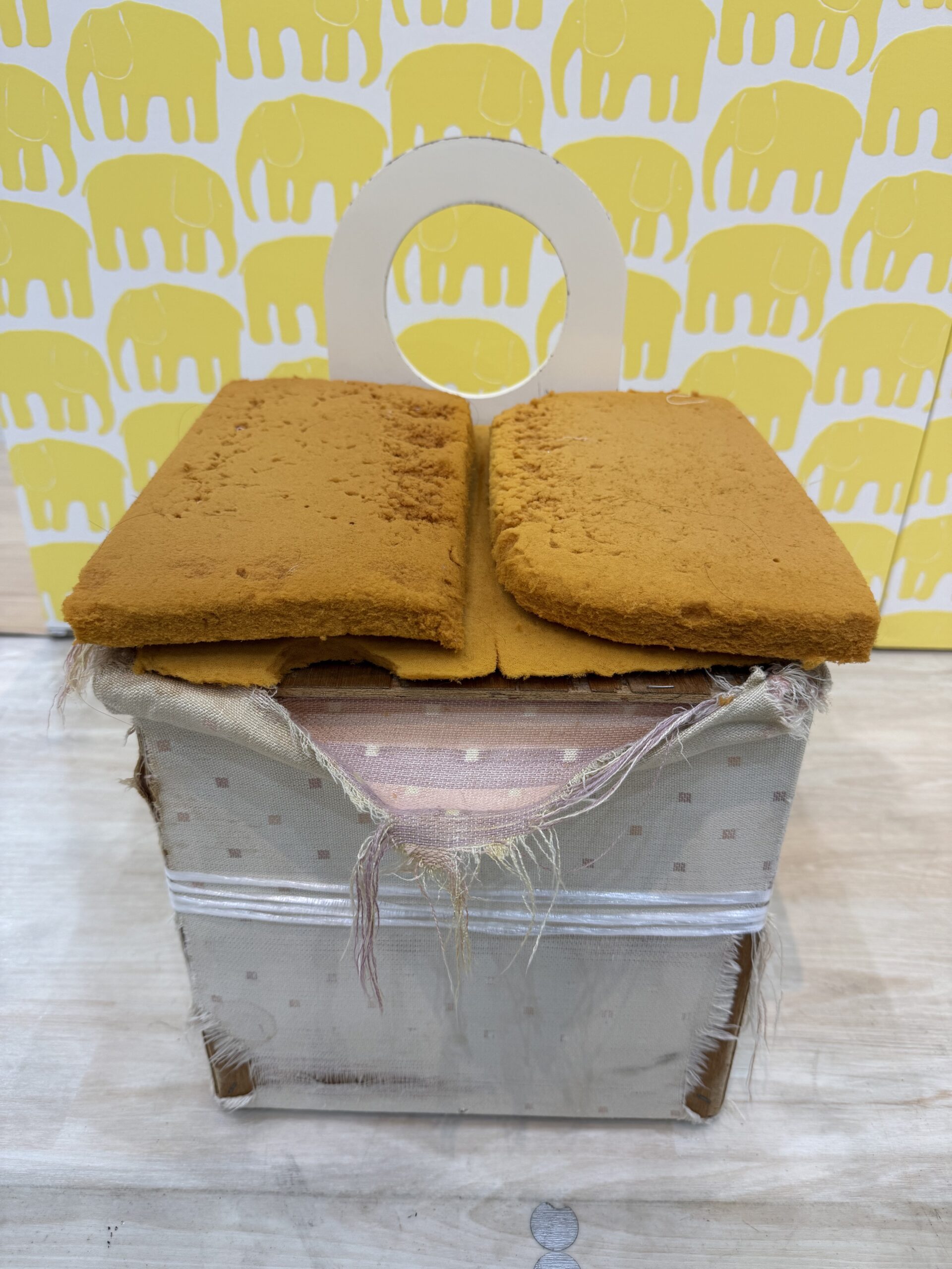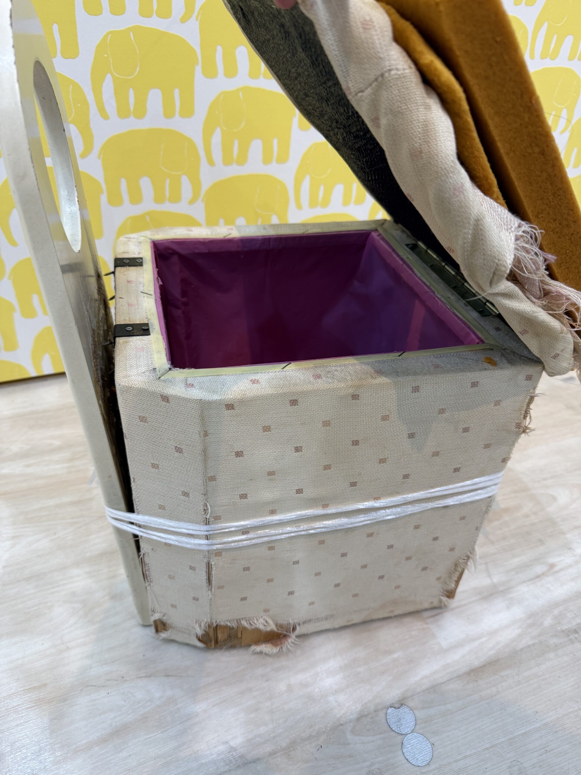 お客様に新しい張地をお選びいただき、背もたれの接着修理や収納部分の補修も含め、すべての工程を無事に完了しました。