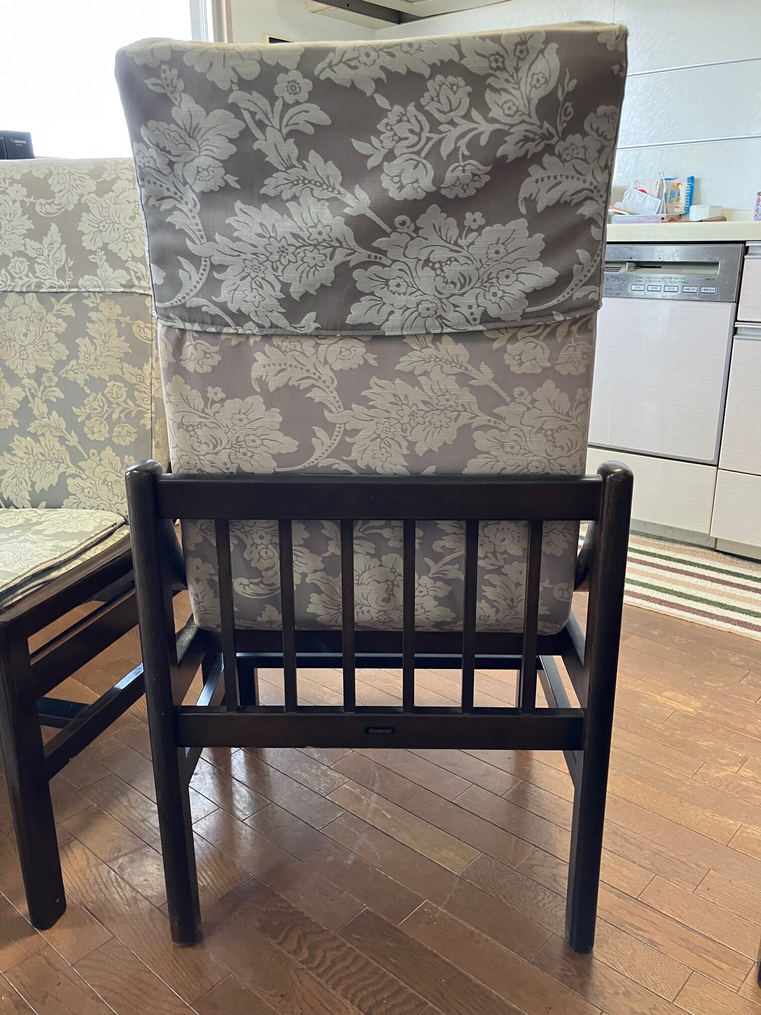 椅子の特定のため、1脚お預かりして確認したところ、「ドマーニ」の食堂椅子6脚であることが判明いたしました。