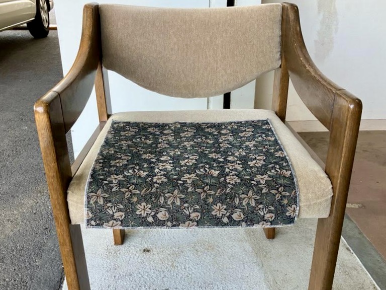 顧客様のお母様より、約39年前にご購入されたという、思い出の詰まった肘付食堂椅子の張り替え修理をご依頼いただきました。