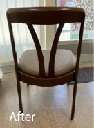 工場で背もたれの凹みを削り取るなどの再塗装を行ったことで、非常にきれいに仕上がりました。(剥き取り再塗装)