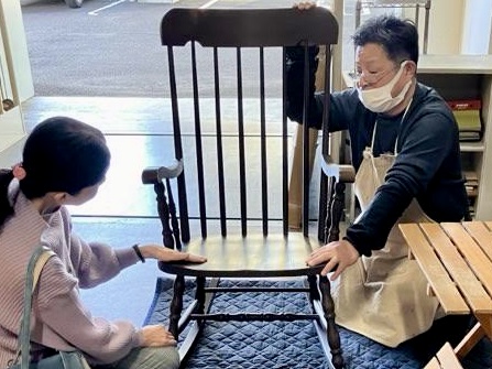お預かりから約2ヶ月後、美しく蘇ったロッキングチェアの仕上がりをご覧になり、お客様からは大変ご満足の声をいただくことができました。