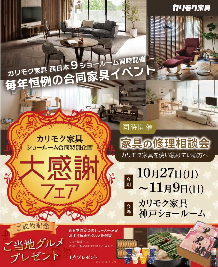 カリモク家具 神戸ショールーム 大感謝フェア|修理ご相談会 同時開催中