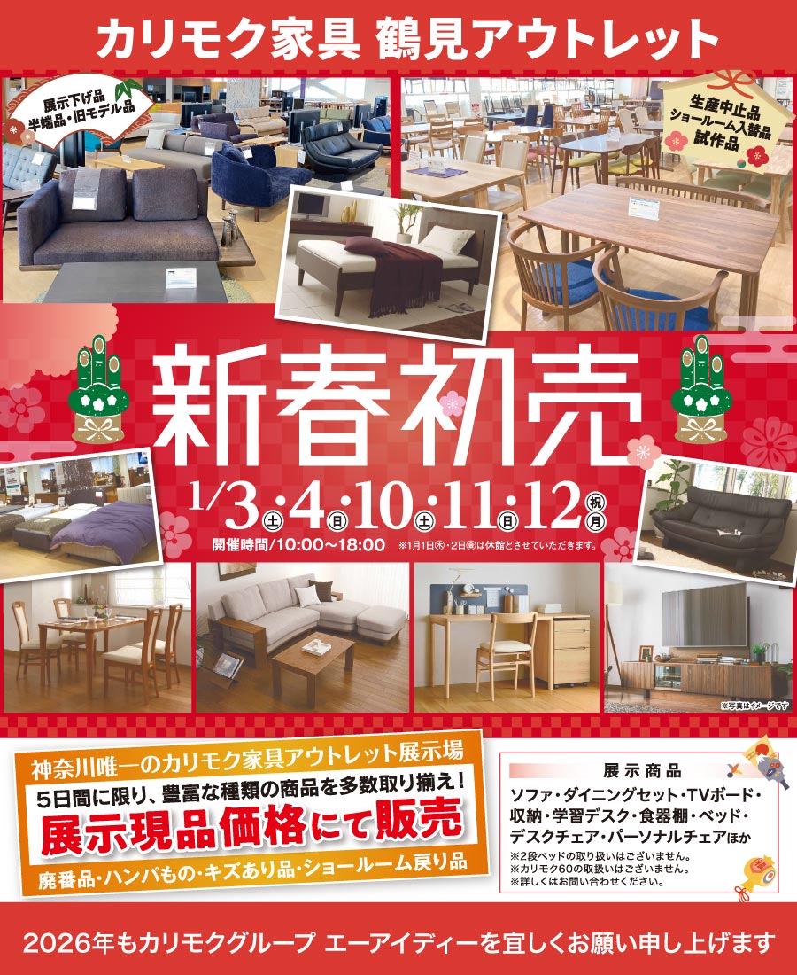 カリモク家具 鶴見アウトレット 【5日間限定】新春初売