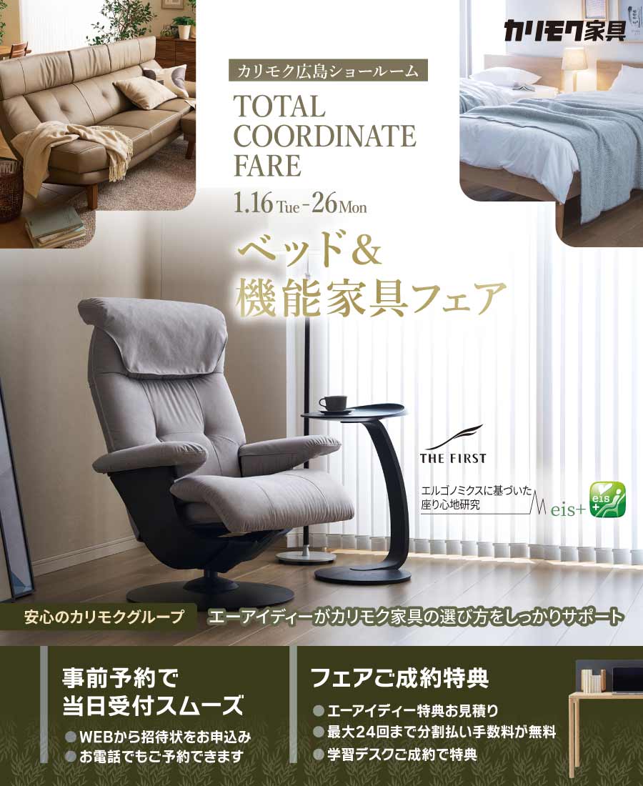 カリモク家具 広島ショールーム ベッド&機能家具フェア